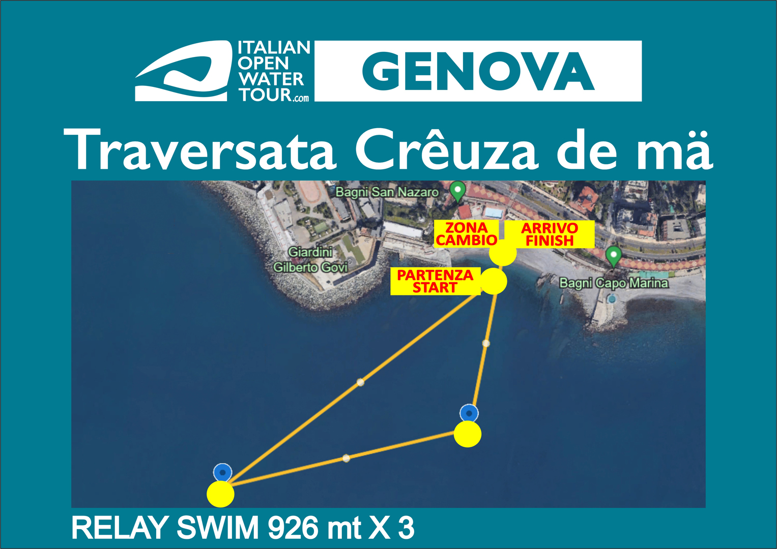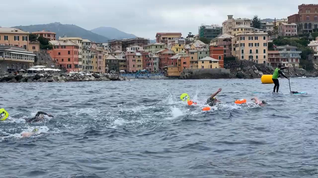 La Genova che non ti aspetti con un lungo mare da cui poter seguire tutte le gare, uno stabilimento balneare super attrezzato e la poesia di Boccadasse: l’ ingresso in acqua accompagnati dalle note di Fabrizio De Andrè porta poesia nel nuoto in acque libere.