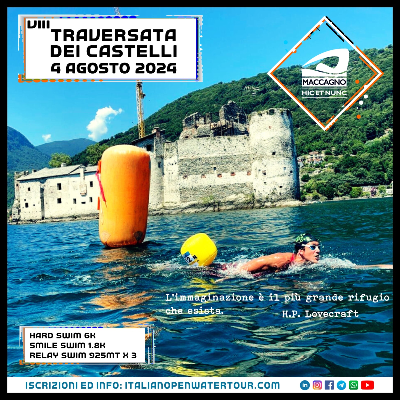 A pochi chilometri dal confine il tratto di acque più limpido del Lago Maggiore rappresenta lo scenario perfetto per circumnavigare i Castelli di Cannero e risalire tra la natura incontaminata come solo il nuoto in acque libere può fare.